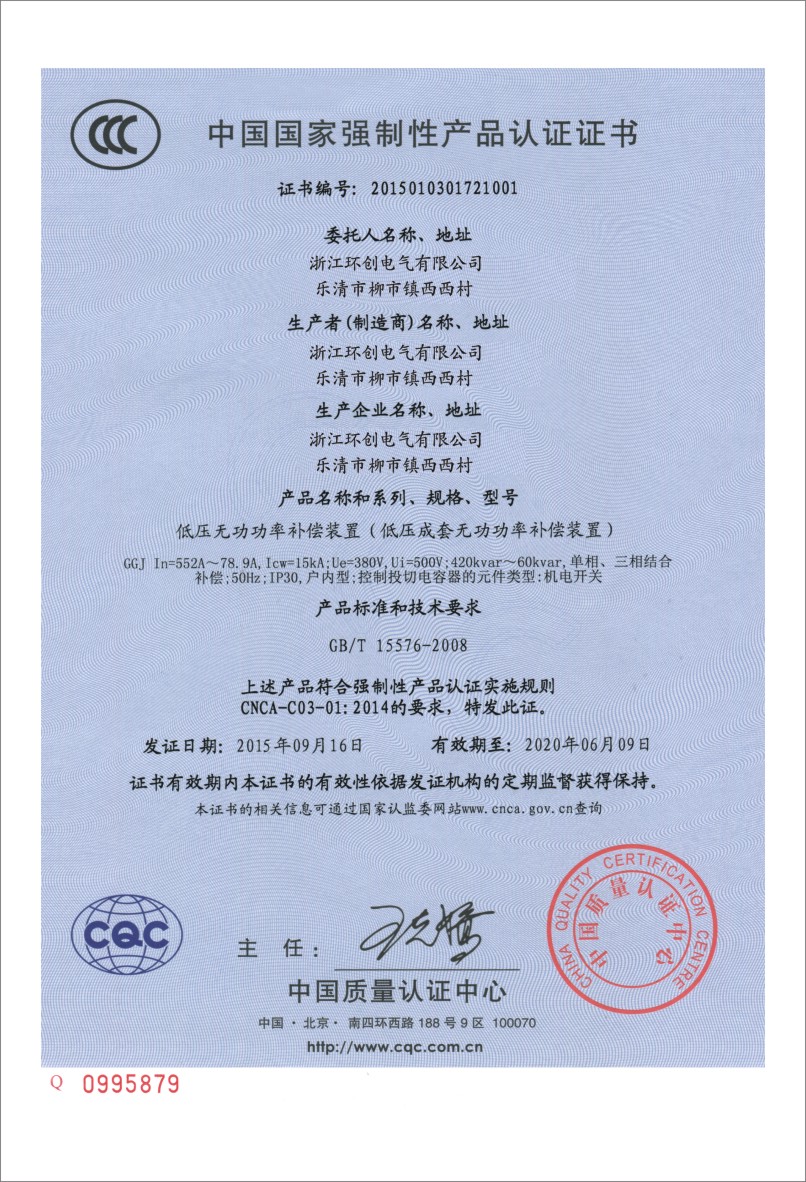 GGJ低壓無(wú)功補(bǔ)償裝置3C證書(shū)