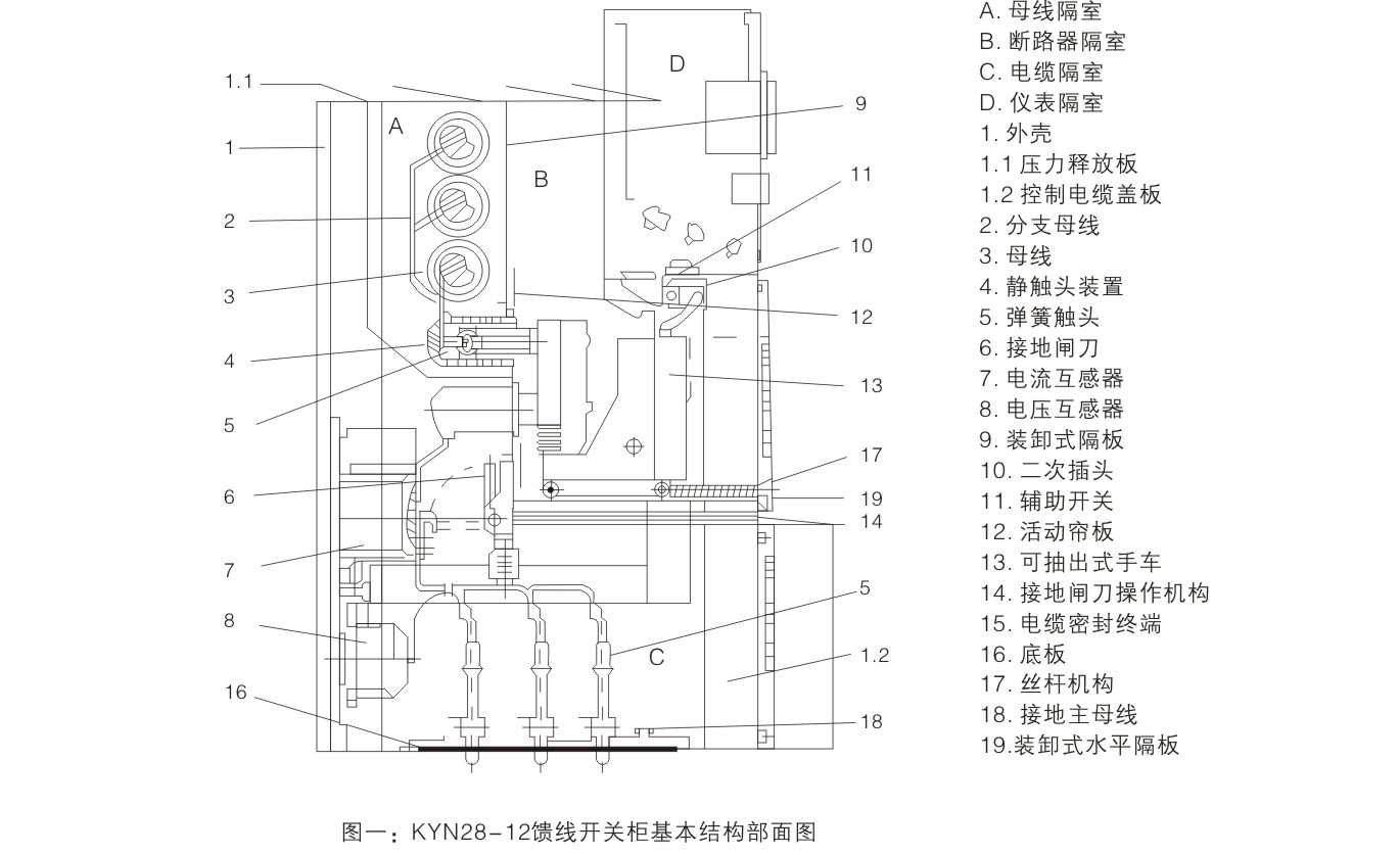 KYN28A-12鎧裝移開式金屬封閉開關(guān)設(shè)備適用于3.6-12kV三相交流50Hz電網(wǎng),作為接受和分配電能,并對電路實行控制、監(jiān)測和保護之用??捎糜趩文妇€、單母線分段系統(tǒng)或雙母線系統(tǒng)。開關(guān)設(shè)備符合IEC298《額定電壓1kV以上52kV及以下交流金屬封閉開關(guān)設(shè)備和控制設(shè)備》、IEC694《廟壓開關(guān)和控制設(shè)備共用條款》,我國GB3906(3-35kV交流金屬封閉開關(guān)設(shè)備》及DIA04《戶內(nèi)交流高壓開關(guān)柜訂貨條件》,德國DIN.VDE0670《額定電壓IkV以上的交流開關(guān)設(shè)備》等標準的要求。并具有完善、可靠的防誤操作功能。