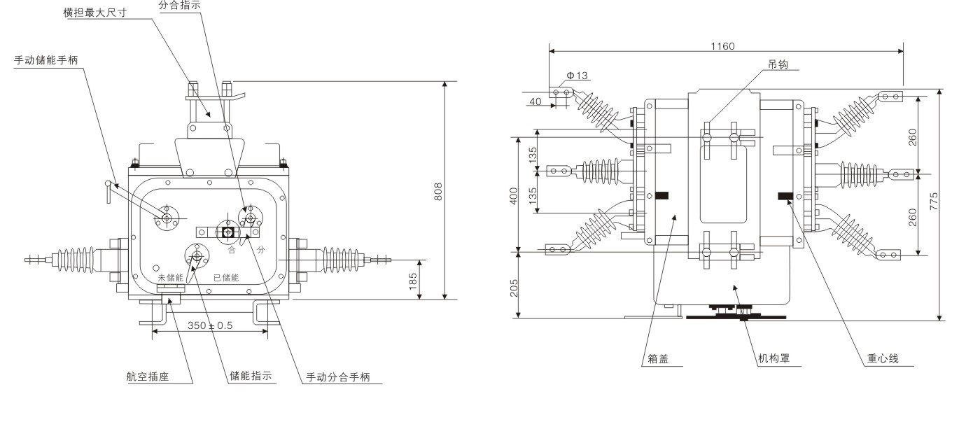 ZW20B-12型戶外柱上高壓真空斷路器為額定電壓12kV、三相交流50Hz的戶外高壓開關(guān)設(shè)備。主要用于開斷、關(guān)合電力系統(tǒng)的負(fù)載電流、過載電流及短路電流。適用于變電站、工礦企業(yè)及城鄉(xiāng)配電網(wǎng)作保護(hù)和控制,特別適用于操作頻繁的場所和城網(wǎng)自動(dòng)化配電網(wǎng)絡(luò)。本產(chǎn)品與控制器配套,能滿足配電自動(dòng)化系統(tǒng)要求,并能可靠而有效地完成傳統(tǒng)的重合器功能。它采用成熟的箱式密封結(jié)構(gòu),內(nèi)部充以SF6氣體,具有良好的密封性能,使之不受外界環(huán)境影響,是一種免維護(hù)產(chǎn)品。其彈簧操動(dòng)機(jī)構(gòu)采用直動(dòng)鏈條主傳動(dòng)和多級脫扣系統(tǒng),動(dòng)作可靠性高,是柱上斷路器的佳品。