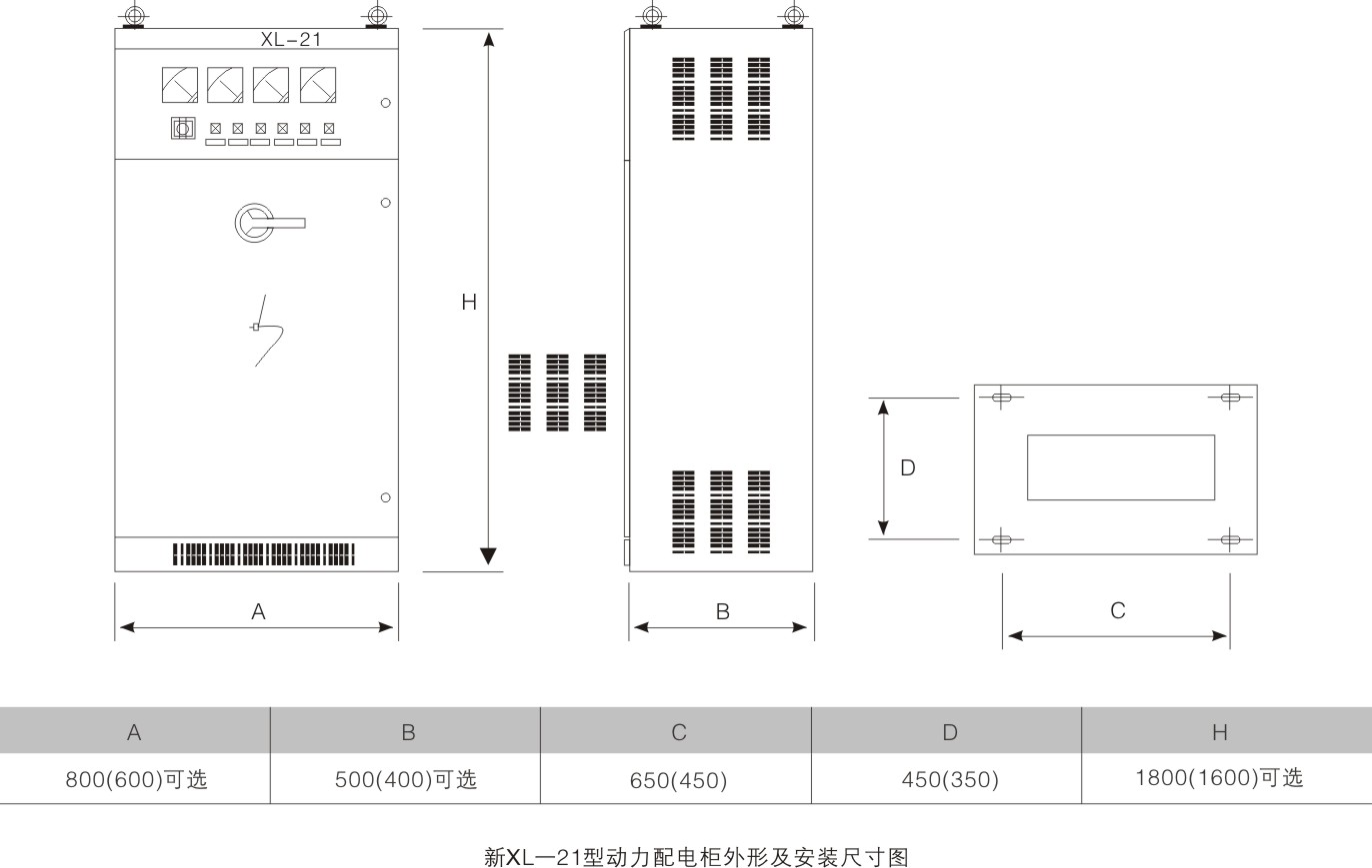 新型XL-21動力箱廣泛用于發(fā)電廠及工礦企業(yè)中,在三相交流500V以下三相三線、三相四線、三相五線等配電系統(tǒng)中作動力或照明配電之用,系戶內靠墻安裝,屏前操作,屏前檢修;箱體為全封閉結構,由C型材或8MF型材拼裝而成。箱內采用新型旋轉式負荷隔離開關,可帶負荷操作,正面門上裝有電壓、電流指示儀表以及信號燈、按鈕、轉換開關等主令元件。本配電箱內采用自行設計的新型組件,結構緊湊,造型美觀大方,維護方便,多種接線方案可供用戶選擇,是替代老型XL-21動力箱的理想產品。